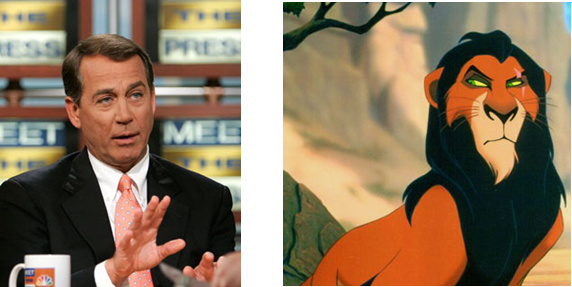 Is it the tangerine hue of his skin? Or the antagonistic look in his green eyes? Our beloved Speaker of the House sure does resemble Scar, the villain from The Lion King.