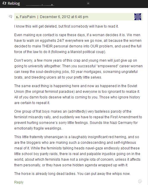 The following comment was semi-anonymously posted on my blog in response to a 2010 post I wrote on Yale’s DKE incident: